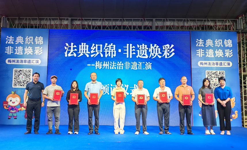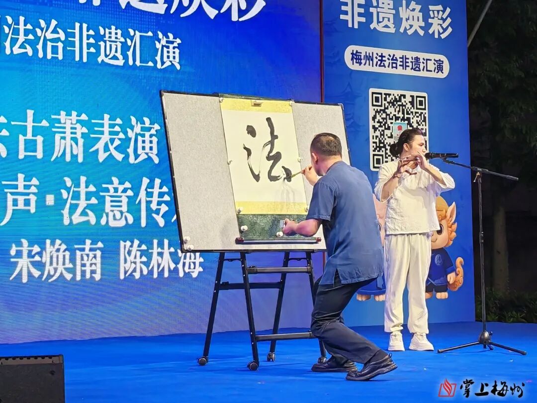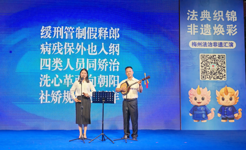 梅州市司法局相关负责人介绍,本次活动精心选取客家山歌、古箫+书法、武术、川剧变脸等非遗艺术,巧妙融入社区矫正、人民调解等法治内涵,既丰富了法治宣传新载体,又拓展了非遗传承的新空间,架起了连接民心的新纽带。据悉,梅州市深入贯彻“八五”普法规划,切实履行“谁执法谁普法”普法责任制,积极响应精神文明建设号召,推动法治文化与精神文明建设深度融合,通过挖掘梅州本土特色文化,运用“非遗+法治”普法工作模式,开辟“与法同行 守护‘梅’好”法治宣传品牌新赛道,推动办事依法、遇事找法、解决问题用法、化解矛盾靠法蔚然成风,为梅州苏区高质量发展营造良好的法治氛围。